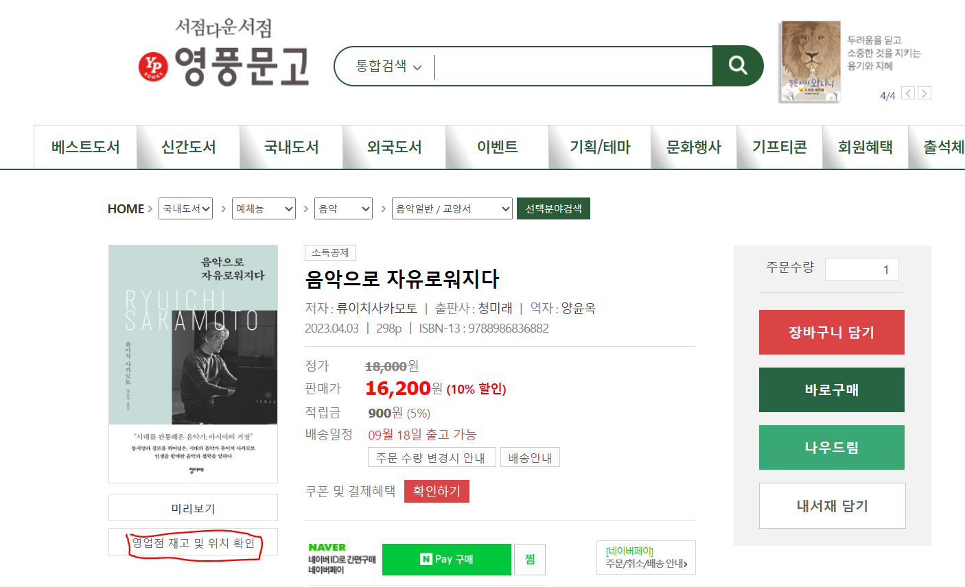 4. 영풍문고 홈페이지에서의 재고확인